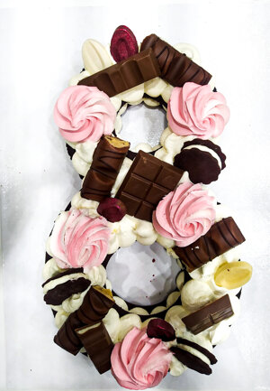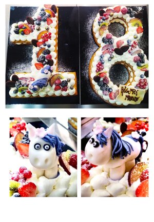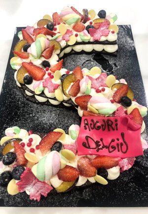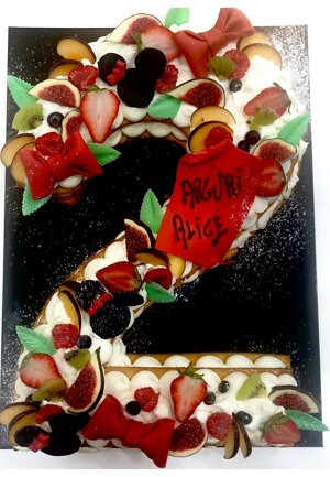 farcita di una cream cheese e decorta con frutta fresca di stagione, cioccolato,fiori, marshmello, macaron, ecc......
